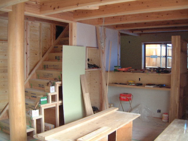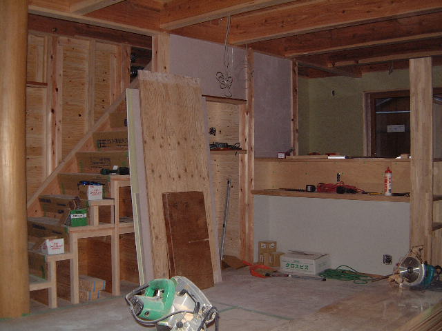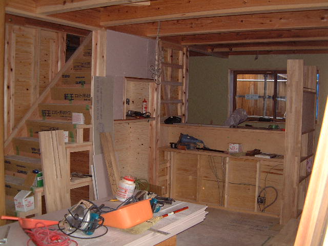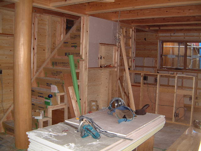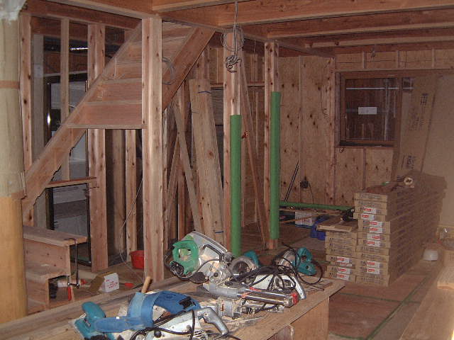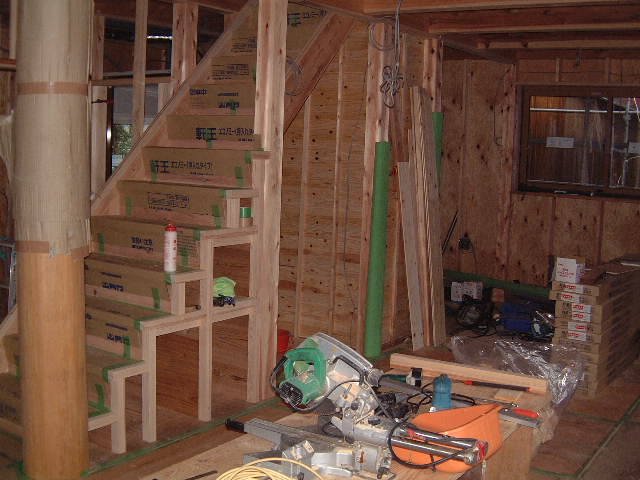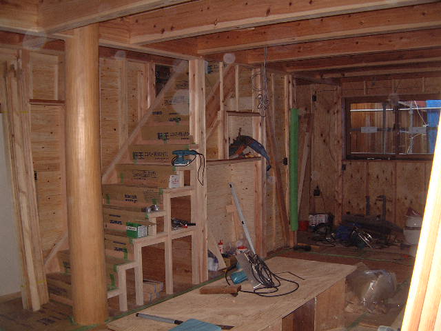 | 7月13日PM7:00 7/12 内装(内壁、階段、敷居・鴨居等)工事中の状況 | ||