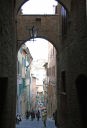 | シエナへ イタリア旅行でどうしても訪ねたかったのはトスカーナ州のシエナ又はサン・ジミニャーノだった。 フィレンッェから70km。なだらかな丘陵のブドウ畑や牧草地が広がる田園風景を見ながらバスは丘の上のシエナへ入っていく。 ドゥオモ マッテオッティ広場から門を潜り、レンガや石積みの家が並ぶ中世のたたずまいの中を歩いてドゥオモへ。 シエナ大聖堂もミラノ大聖堂と同じゴシック様式で尖塔や大理石の彫刻が美しい。 正面の大理石円柱上にローマ建国の人物である狼の乳を飲む双子の彫像がある カンポ広場 その後、貝殻型に広がる有名なカンポ広場へ出た。毎年7月、8月の2回ここで競馬が行われるとのこと。 ヨーロッパ人はなぜにこのように上手く広場を作れるのだろうか?日本にはない文化だと思う。 ここで少々自由行動。丘の上に広がる旧市街は狭い路地や坂が多く迷い易いのであまり遠くへは行けない。。 中世の名残の牛や馬をつなぐワッパが随所に見られる。 朝の人気の無い路地を散策していると何処からか馬に乗った騎士が出てくるような錯覚に陥る。 谷向こうの家々は遠近感のある風景画を見ているような気持ちにさせられる。 想像どうりの良い街だ。時間があればもっともっとゆっくり歩きたい。 アッシジへ 今日はサッカーの試合日のため入場した門へはバスが入れなくなったそうだ。そのため、カンポ広場から路地を抜け眺めの良い丘の外れに出てサンタゴスティーノ教会の前を通り城壁のある駐車場から出発した。 |